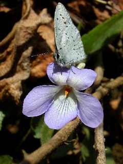 ![]() タチツボスミレとルリシジミ。 |