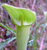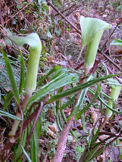 | いつも出かける林道ににょきにょき細いタケノコのような茎が… こんなにテンナンショウが咲くなんてびっくり。 この道はもうしばらくすると 道の草を刈ってしまうので 今まで出会うことがなかったのです… |