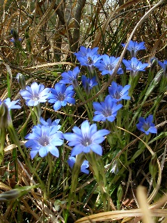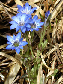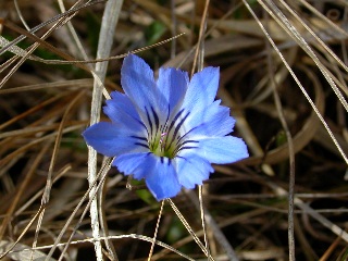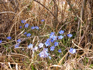 ハルリンドウ (リンドウ科リンドウr属) 目の覚めるような透き通った青い色… 湿地の中でも日当たりのいい 太陽がさんさんと降り注ぐ場所に 足の踏み場がないほど群生していました。 それにしてもかわいらしい花形ですよね。 10裂した花びらが交互に形を変えて すばらしいデザインになっています。これぞ自然の神秘。 ちなみによくにたフデリンドウとは、 茎の根元の葉の有無で区別できます。 フデリンドウには茎の根元に葉がありません。 | |