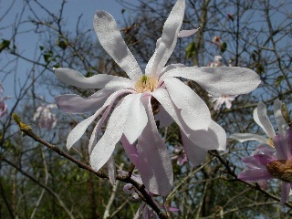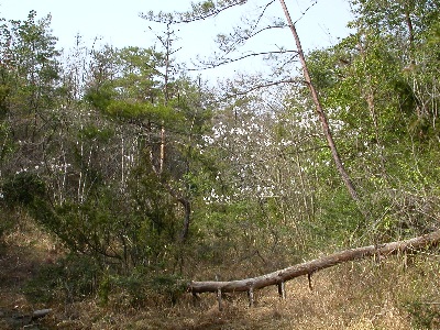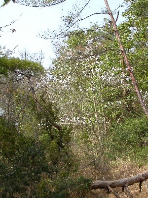 | 上の湿地には シデコブシの小さな苗木も多く見られました。 さらにはこの場所から少し離れたところにも こんなにたくさんの花を咲かせた シデコブシの巨木が何本かありました。 このあたりにはまだたくさん湿地が残っているのです。 | ![]() |