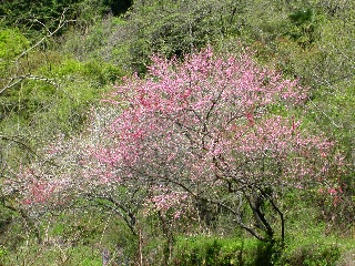 もう初夏、と思いきや、山ではまだハナモモも花盛り… |