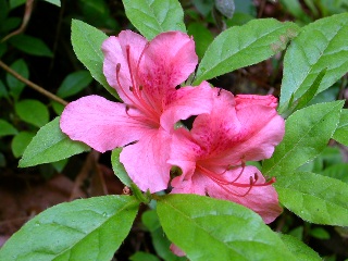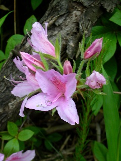 | 新緑にも映えるヤマツツジの鮮やかな色 |