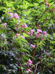 山道脇でもかわいいピンクのタニウツギが咲き始めました。