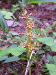 ノギラン (ユリ科ノギラン属) 葉がショウジョウバカマにそっくりなので 私はてっきりショウジョウバカマの花の跡なのかと 思いこんでいました(笑) ノギランという別の花の花跡でした。 もう花びらやしべは見られなくなっていますが 花柄が残っていてなかなか風情があります。 名前にランとついていますが、 ショウジョウバカマと同じユリの仲間です。 | ミヤマナルコユリ