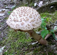 池の周りにはこんな巨大なキノコが |