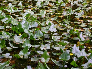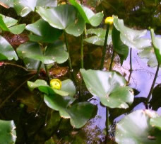 ヒメコウホネ (スイレン科 コウホネ属) 地下茎が白く、 骨のように見えることから コウホネ(河骨)と呼ばれる。 コウホネよりひとまわり小さい。 | ![]() | |