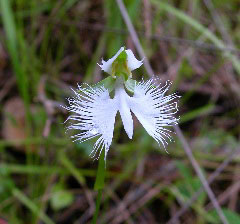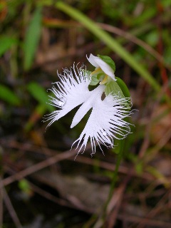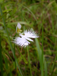 みなさんが掲示板に貼ってくださるサギソウ。 私も会いたくて… 「サギソウの自生なんてもう無いよね…」と私。 「こういう場所にサギソウは生えるんだけどねえ」 ある道路脇の湿地で母が言いました。 あまりに道路に近いので、 こんなとこに咲くのかな?と思いつつ 「まあ、とりあえず、覗いてみよっか」と車を降りた私。 中を覗いてみると… サギソウだ! 野生のサギソウが美しい花を咲かせていました。 |