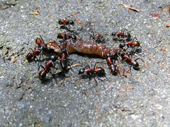 道路で出会った背中の赤い巨大アリ。 行き倒れのミミズをむしゃむしゃ…(本当に音がしてました) | ![]() |